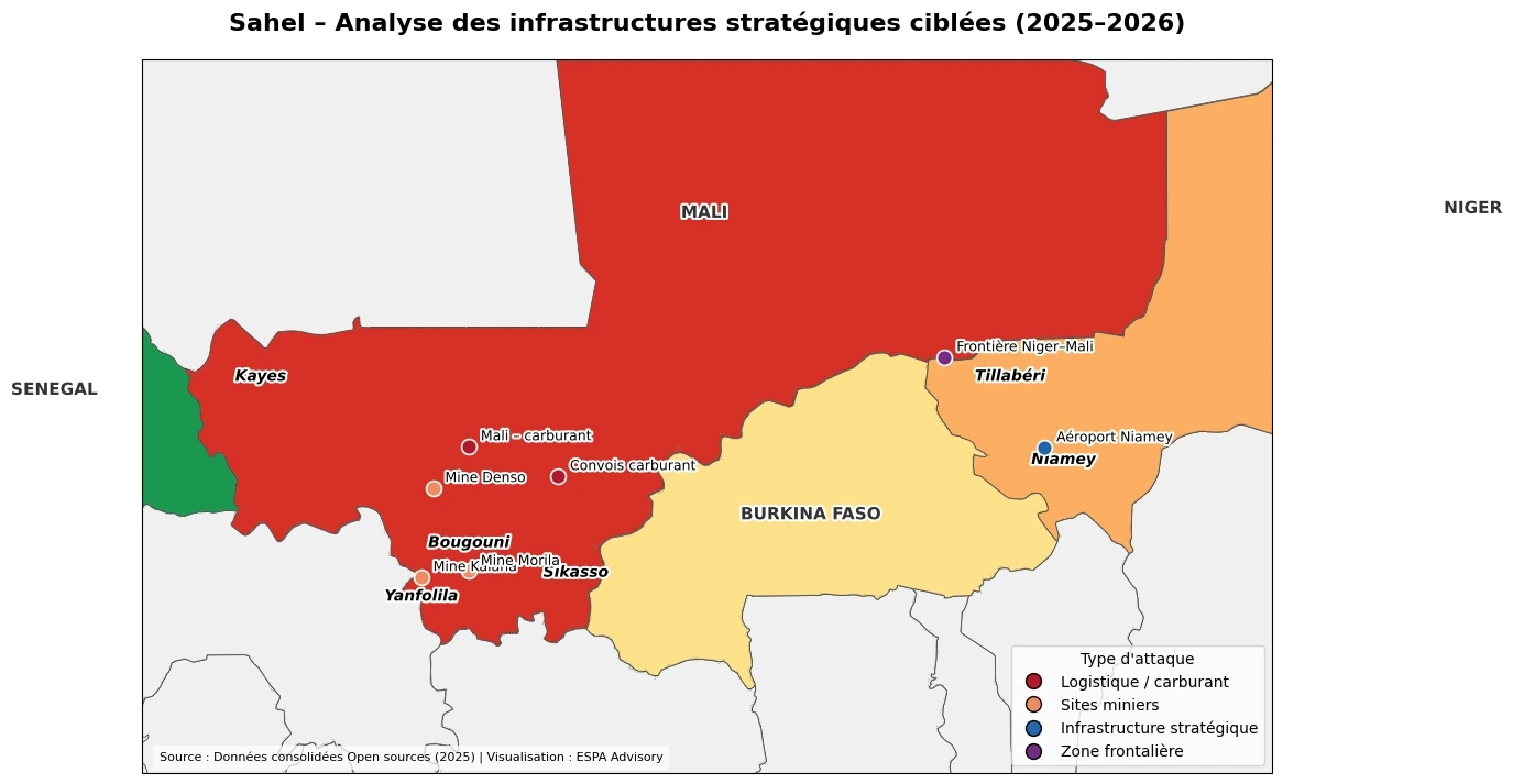 Depuis le mois d’août 2025 plusieurs attaques ont montré la montée en puissance des groupes terroristes au Sahel, ciblant des infrastructures stratégiques mais surtout des entreprises.